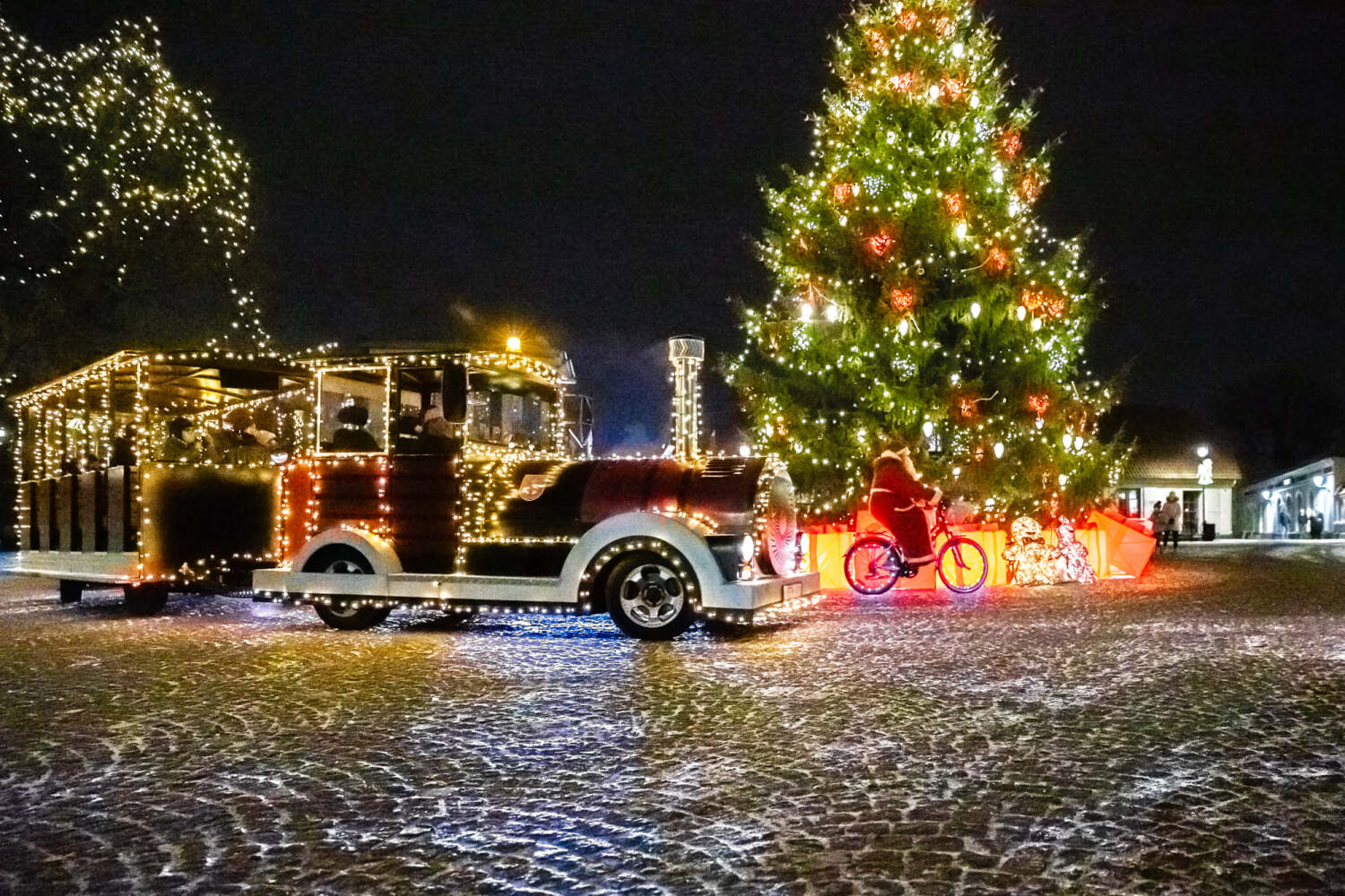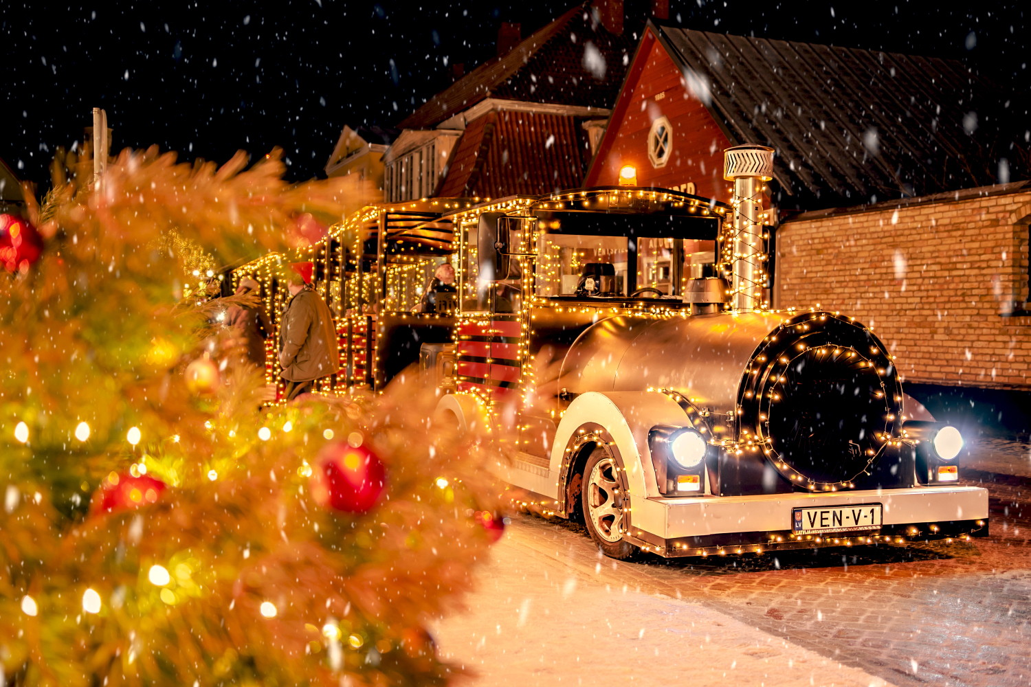 Līdzās Nikolaja baznīcai gājējus priecē gaismiņām rotātā egle, eņģeļi pūš taures pie Betlēmes silītes, un Ziemassvētku vilcieniņš kursē pa mirdzošajām ielām.